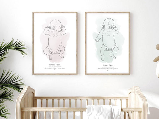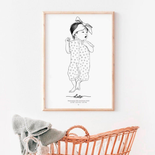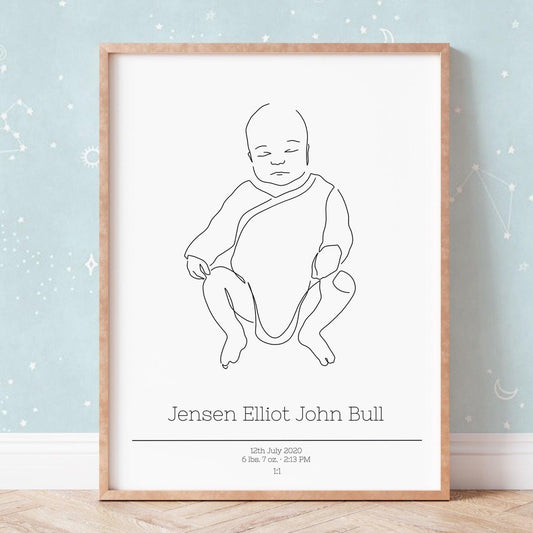 CUSTOM LINE ART BIRTH POSTER 1:1 scale - Minimalist illustration